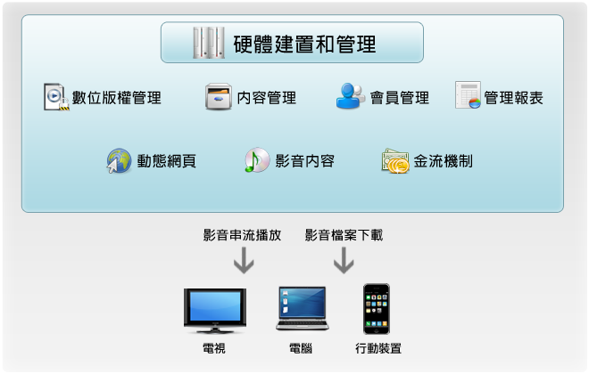 WEPOWER團隊參與過眾多大型隨選視訊平台建置專案,從前端的動態網頁程式,到後端的內容管理系統(Content Management System)、會員管理系統、金流機制的串接和影音伺服器的管理,都擁有充分的經驗,可提供隨選視訊平台的完整解決方案。